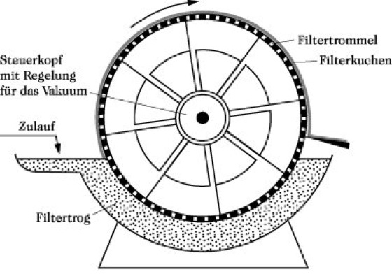 Filter. Abb. 2: Schnitt durch ein Vakuumtrommelzellenfilter.