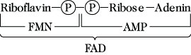FAD + PPa (Abb.). Das anorganische Pyrophosphat (PPa) wird anschließend in stark exothermer Reaktion durch die Pyrophosphatase zu Orthophosphat hydrolysiert. F. ist weniger photolabil als FMN oder Riboflavin. Unter alkalischen Bedingungen wird F. sehr schnell in cyclisches Riboflavin-4',5'-phosphat überführt. Verdünnte Lösungen von F. führen beim Erhitzen zum FMN.