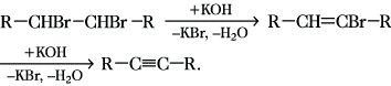 Halogenalkane, Alkylhalogenide, gesättigte aliphatische Halogenkohlenwasserstoffe. In Abhängigkeit von der Anzahl der Halogenatome im Molekül unterscheidet man Mono-, Di-, Tri-, Tetrahalogenalkane usw. Die Bezeichnung der H. erfolgt 1) nach der systematischen Nomenklatur aus dem Namen des entsprechenden Halogenatoms und dem Begriff für das Alkan, z. B. Chlormethan CH3-Cl, 2-Brompropan CH3-CHBr-CH3, 1-Brom-2-chlorethan Br-CH2-CH2-Cl; 2) nach der radikofunktionellen Nomenklatur als alkylsubstituierte Halogenide, z. B. Methylchlorid CH3-Cl, Isopropylchlorid (CH3)2CH-Cl, Methylenbromid CH2Br2. Bei Anwesenheit unterschiedlicher Halogenatome im Molekül kann letztere Nomenklatur nicht angewendet werden. Zahlreiche H. sind farblose Flüssigkeiten mit charakteristisch süßlichem Geruch. Einige Halogenmethan- und -ethanderivate sind gasförmige, höhermolekulare Abkömmlinge feste Verbindungen. Bei Abwesenheit hydrophiler Gruppen sind sie in Wasser unlöslich, in den meisten organischen Lösungsmitteln löslich. Die Halogenatome in H. können normalerweise relativ leicht durch andere nucleophile Reagenzien ausgetauscht werden, dadurch können leicht andere funktionelle Alkanderivate, z. B. Amine, Thiole, Alkohole, Thiocyanate, gebildet werden. Austauschreaktionen eines Halogenatoms durch ein anderes sind unter den Bedingungen der Finkelstein-Reaktion ebenfalls möglich. Durch Dehydrohalogenierung können aus geeigneten H. Alkene und Alkine synthetisiert werden: