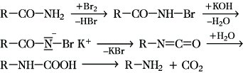 Der so gebildete Isocyansäureester wandelt sich in Gegenwart von Wasser in die instabile Carbamidsäure um, die rasch in Kohlendioxid und primäres Amin zerfällt. Der H. v. S. ermöglicht somit die Umwandlung von Carbonsäureamiden in die um ein C-Atom ärmeren primären Amine.