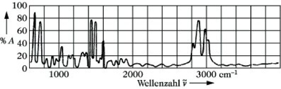 Infrarotspektroskopie, IR-Spektroskopie, Ultrarotspektroskopie, UR-Spektroskopie, Teilgebiet der Spektroskopie, das die Wechselwirkung elektromagnetischer Strahlung aus dem infraroten Spektralbereich mit einer Probe untersucht. Wenn eine geeignete Probe eines Stoffes mit IR-Strahlung durchstrahlt wird, so wird eine Reihe von Frequenzen dieser IR-Strahlung absorbiert, die andere wird durchgelassen. Trägt man die prozentuale Absorption A oder Durchlässigkeit der Probe in Abhängigkeit von der Wellenzahl ν~ oder Wellenlänge auf, so erhält man ihr IR-Spektrum (Abb. 1). Bei der Absorption der Strahlung ändern die Moleküle ihre Rotations- und Schwingungsenergie. Die dabei entsprechend der Gleichung ΔE= h ν (E Energie, h Plancksche Konstante) auftretenden Rotations- und Schwingungsfrequenzen ν erlauben weitgehende Rückschlüsse auf die Struktur von Molekülen und gestatten deren qualitative und quantitative Bestimmung.