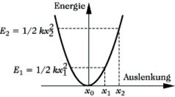 Infrarotspektroskopie. Abb. 3: Potentialurve des klassischen harmonischen Oszillators (x1, x2 beliebige Auslenkungen).