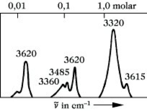 Infrarotspektroskopie. Abb. 9: Konzentrationsabhängigkeit des IR-Spektrums von Cyclohexanol in Tetrachlorkohlenstoff.