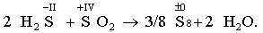oder die Vereinigung von Schwefeldioxid und Schwefelwasserstoff zu Schwefel: