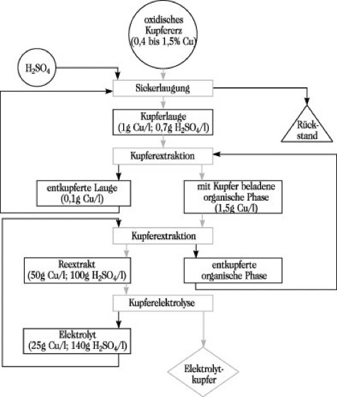 Kupfer. Abb. 2: Schema der hydrometallurgischen Kupfergewinnung aus oxidischen Erzen.