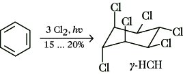 Lindan, γ-Hexachlorcyclohexan, Abk. γ-HCH, gehört zu den ehemals bedeutendsten Chlorkohlenwasserstoffinsektiziden. γ-HCH hat als einziges HCH-Isomeres hervorragende insektizide Eigenschaften. Die Herstellung erfolgt durch Photochlorierung von Benzol zu technischem Hexachlorcyclohexan und anschließender fraktionierter Kristallisation zur Abtrennung des wirksamen Isomeren: