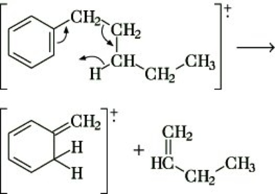 des Pentylbenzols bildet sich z. B. der intensive Peak bei der Massenzahl 92 durch diese Umlagerung.