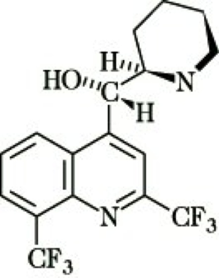 Mefloquin, ein Antimalariamittel mit chininähnlicher Struktur. Es wirkt auf Blutschizonten.