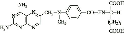 Methotrexat, ein Antimetabolit der Folsäure, der hauptsächlich als Cytostatikum eingesetzt wird. M. wirkt als Inhibitor der Dihydrofolsäurereductase, da es eine wesentlich stärkere Affinität zu diesem Enzym als Dihydrofolsäure hat. Als Antidot für die Behandlung mit M. steht Folinsäure zur Verfügung.