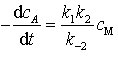 Bei hohen Konzentrationen cM ist k1<< k2cM, und man erhält das Zeitgesetz 1. Ordnung