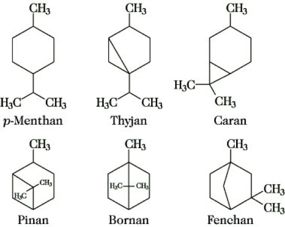 Monoterpene. Abb.: Grundstrukturen mono- und bicyclischer Monoterpene.