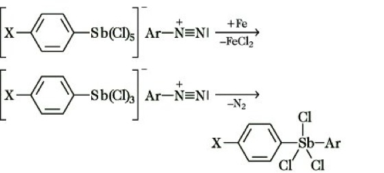 + N2. Durch Variation der Diazoniumdoppelsalze lassen sich verschiedene metallorganische Verbindungen des Zinns, Bleis, Arsens, Antimons, Bismuts und Thalliums herstellen.