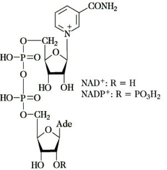 NAD+, oxidierte Form des NAD, Mr 663,4 λmax = 260 nm (ε = 18,0·103 mol-1 cm-1), E0 = 0,316 V (pH = 7,0).