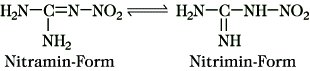 Nitroguanidin, (NH2)2C=N-NO2, eine farblose, kristalline Verbindung; F. 239 °C (Z.). N. kann in zwei Formen auftreten: