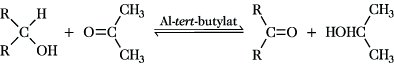 Für den Reaktionsablauf nimmt man einen cyclischen Übergangszustand an. Aus dem zur O. eingesetzten Alkohol bildet sich zunächst das Aluminiumalkoxid und daraus mit Aceton ein Komplex, in dem eine Hydridübertragung aus dem Alkoxidrest auf die Carbonylgruppe stattfindet.
