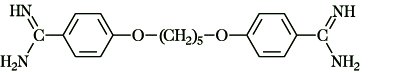 Pentamidin, ein Vertreter der als Mittel bei Trypanosomeninfektionen verwendeten Bisamidine.