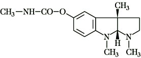 etwa 0,1 % enthalten ist. P. ist als Carbamidsäureester gegen Alkalien labil und spaltet sich in Methylamin, Kohlendioxid und Physostigmol (Eserolin), das eine phenolische OH-Gruppe enthält. Unter Einwirkung von Oxidationsmitteln bildet es farbige Verbindungen mit o-chinoider Struktur. P. wirkt als Acetylcholinesterasehemmer (Parasympathikomimetika) und wird in der Augenheilkunde bei Glaukom angewendet.