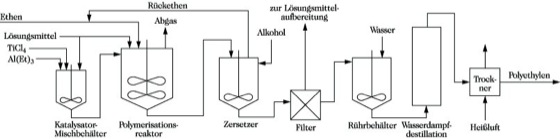 Polyethylen. Abb. 2: Verfahrensschema zur Herstellung von Niederdruckpolyethylen.