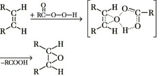 Prileschajew-Reaktion, Reaktion zur Herstellung von Oxiranen (Epoxide) durch Einwirkung von Peressigsäure, Perbenzoesäure und Monoperphthalsäure auf Alkene. Als Lösungsmittel dienen Chloroform, Ether, Aceton oder Dioxan. Der Reaktionsmechanismus entspricht einer elektrophilen cis-Addition synchron über einen cyclischen aktivierten Komplex. Alkylsubstituenten erleichtern die Reaktion in der Reihe CH2=CH2< RCH=CH2< RCH=CHR < (R)2C=C(R)2; Carboxygruppen wirken reaktionserschwerend. Die säurekatalysierte Hydrolyse der Oxirane führt unter Ringöffnung zu trans-1,2-Diolen. Die P. ist vor allem bei nichtflüchtigen, wasserunlöslichen Alkenen, die sich anderen Epoxidationsmethoden entziehen, wertvoll.