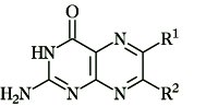Pterin, 2-Amino-4-hydroxypteridin (R1, R2 = H). Derivate des P. kommen ubiquitär in allen Organismen vor. Die Biosynthese erfolgt aus Pyrimidin-Derivaten.