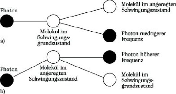Raman-Spektroskopie. Abb. 3: Entstehung von Stokesschen (a) und Anti-Stokesschen (b) Linien.