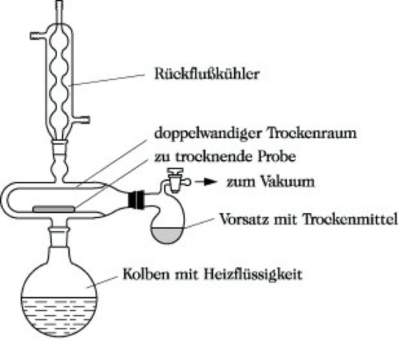 Trocknen, das Abtrennen von Feuchtigkeit von einem Stoff oder Stoffgemisch durch Verdunsten, Verdampfen, Sorption, Sublimation, selektive Destillation, Ausfrieren oder durch chem. Reaktionen. Im Laboratorium erfolgt das T. von Gasen durch Ausfrieren der Feuchtigkeit mit Kältebädern, Absorption durch flüssige Trockenmittel (z. B. Schwefelsäure), Adsorption durch feste Trockenmittel (z. B. Molekularsiebe) oder mit hygroskopischen Verbindungen, die während des T. Hydrate bilden (z. B. Calciumchlorid). Die Trocknungsvorgänge werden in Waschflaschen, Trockenrohren und -türmen durchgeführt (Abb. 1).
