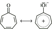 Tropon, Cyclohepta-2,4,6-trienon, eine farblose, viskose Flüssigkeit; F. -7 °C, Kp. 104 bis 105 °C bei 1,33·103 Pa, nD22 1,6172. T. ist in Wasser löslich. Im Gegensatz zu anderen Ketonen reagiert T. nicht mit Phenylhydrazin und nur schwer mit Semicarbazid oder Hydroxylamin. Die Ursache für dieses Verhalten liegt in der Elektronenverteilung im T., in dem sich ein stabiles π-Elektronensextett ausbilden kann. Die Struktur des T. wird deshalb am besten mit Hilfe der mesomeren Grenzstrukturen beschrieben. Durch diese Formulierung wird verständlich, daß T. mit Chlorwasserstoff zu einem salzartigen Hydroxytropyliumchlorid reagiert.