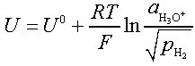 H2 + 2 H2O bestimmt. Damit ergibt sich nach der Nernst-Gleichung das Elektrodenpotential zu: