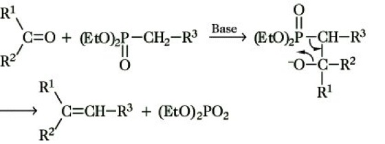 Wittig-Horner-Reaktion, eine Weiterentwicklung der Wittig-Reaktion, bei der anstelle des P-Ylids ein Phosphonsäuredialkylester in Gegenwart einer Base zur Carbonylolefinierung verwendet wird. Der Vorteil dieser Methode besteht darin, daß