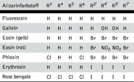 Xanthenfarbstoffe. Tab.: Wichtige Vertreter.
