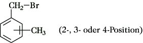 Xylylbromide, Methylbenzylbromide, α-Bromxylole, die drei strukturisomeren Xylole mit einem Bromatom in der Seitenkette. Die X. sind in Wasser unlöslich, in Alkohol, Ether und Chloroform löslich.