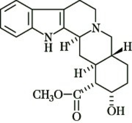 Die Biosynthese erfolgt aus Tryptophan und einem Monoterpen. Man kann es den Alkaloiden vom Typ des β-Carbolins zurechnen. Y. entfaltet als Sympathikolytikum vor allem eine gefäßerweiternde Wirkung und wird gelegentlich bei Hypertonie eingesetzt.