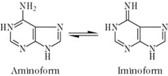 Adenin: Tautomere Formen des Adenins. Adenin