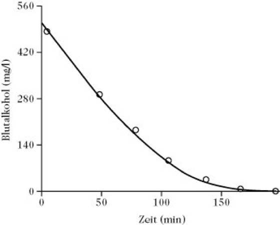 Der vollständige Verlauf der Blutalkoholkonzentrationen wird durch die Michaelis-Menten-Gleichung beschrieben: