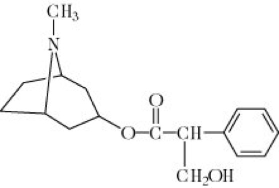 Atropin, DL-Hyoscyamin, Eatropine, der Tropinester der D,L-Tropasäure (Abb.). Das Racemat wird während der alkalischen Aufarbeitung von L(–)-Hyoscyamin gebildet. Die Racemisierung erfolgt so schnell, dass vermutlich das meiste aus pflanzlichem Material isolierte A. von L(–)-Hyoscyamin abstammt. Das Alkaloid A. gehört wie Scopolamin und Cocain der Untergruppe der Tropa(n)alkaloide an. Die in Nachtschattengewächsen (Solanaceae), v. a. in der Tollkirsche (Atropa belladonna) und im Stechapfel (Datura stramonium), enthaltene Verbindung kann bereits in extrem kleinen Dosen zur Pupillenerweiterung, Erregung des ZNS und Herabsetzung der Schweiß-, Speichel- und Schleimsekretion führen. A. inhibiert spezifisch jene cholinergen Neuronen, die durch Muscarin aktiviert werden. L(–)-Hyoscyamin ist der Tropinester der L-Tropasäure. Für den pupillenerweiternden Effekt ist nur die L-Form verantwortlich, aber in der Medizin wird nur das racemische A. verwendet. Einige A.-Sulfat-haltige Belladonna-Präparate sind als Beruhigungsmittel im Handel, auch in Präparaten gegen Sodbrennen und Magenübersäuerung können kleine Mengen an A. enthalten sein.