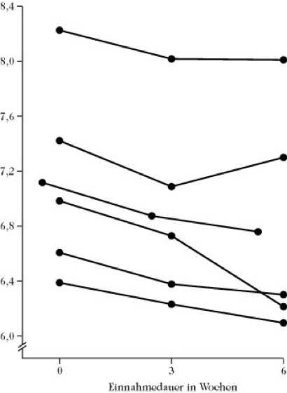 Blutviskosität: Verringerung der B. durch ω-3-Fettsäuren im Rahmen einer Fischöl-Diät (rel. Einheiten). [n. I.J Cartwright et al., Atherosclerosis55 (1985) 267–281] Blutviskosität