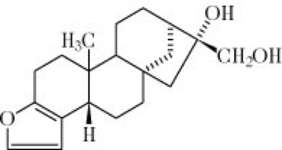 Cafestol, Ecafestol, ein Diterpen (Abb.), das in Arabica-Kaffees zu 2,7–6,7 g / kg TM, in Robusta-Kaffees zu 1,5–3,7 g / kg TM vorkommt (Kaffee). Es liegt größtenteils als Fettsäureester im Kaffeeöl vor und wird beim Rösten und Dämpfen teilweise abgebaut, wobei Dehydrocafestol und Cafestal entstehen. C. ist kaum wasserlöslich und findet sich in gefiltertem Kaffeegetränk nur in Spuren. Größere, an Trübstoffe gebundene Mengen bewirken eine Blutcholesterin-Erhöhung (geschätzt: 0,13 mmol / l durch 10 mg C.). Diese macht sich vor allem bei Aufgüssen nach Skandinavischer Art, beim Türkischen Kaffee und bei der Pressstempel-Methode bemerkbar (Kaffeezubereitungen). In Arabicas kommt daneben Kahweol (1,2-Dehydro-C.) zu 1,1–3,5 g / kg TM vor, das sich chemisch ähnlich verhält, aber anscheinend nicht zur Blutcholesterin-Erhöhung beiträgt. In Robustas findet es sich nur in Spuren. Das nur in Robusta vorkommende 16-O-Methylcafestol kann zum Nachweis von Robustas in Mischungen verwendet werden.