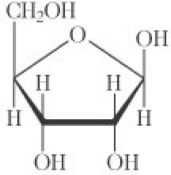 D-Ribose, Eribose, eine Pentose (Abb.), die sich als Kohlenhydratbaustein in den Ribonucleinsäuren (über Ribose-5-phosphat), in einigen Coenzymen, im Cobalamin, in den Ribosephosphaten und verschiedenen Glycosiden findet. Durch Kulturhefen ist R. nicht vergärbar.