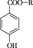 Ester der p-Hydroxybenzoesäure: R = CH3 (Methyl-p-hydroxybenzoesäure), C2H5 (Ethyl-p-hydroxybenzoesäure) oder C3H7 (Propyl-p-hydroxybenzoat).