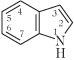 Indol, Benzopyrrol, Eindole, die Stammverbindung vieler wichtiger Naturstoffe (z. B. Tryptophan, Serotonin, Indolalkaloide, Indigo). Freies I. (Abb.) riecht nach Fäkalien und kommt in einigen Pflanzenblütenölen vor. I. entsteht auch beim bakteriellen Abbau von Tryptophan (Nachweisreaktion!). Indole.