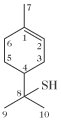 Menthenthiol, p-Menth-1-en-8-thiol, Ementhenthiol, ein Schwefel-Derivat der monozyklischen Terpenreihe, das als charakteristischer Aromastoff der Grapefruit identifiziert wurde. M. besitzt ein asymmetrisches C-Atom und existiert daher in zwei enantiomeren Formen (Abb.), die beide, wie auch das synthetisch erhaltene Racemat, eine extrem niedrige Geruchsschwelle aufweisen. So sind z.B. 10–7 mg des Racemats in 1 l Wasser durch Geschmacks- und Geruchssinn wahrnehmbar.