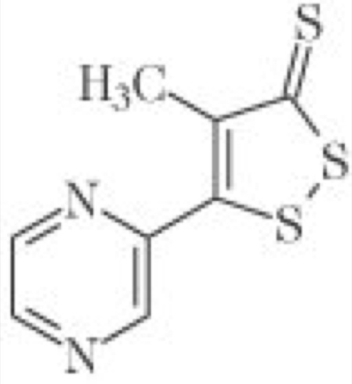 Oltipraz, Eoltipraz, eine synthetische, schwefelhaltige Substanz (Abb.) mit chemopräventivem Potenzial (Oltipraz-Chemoprävention), d. h. mit der Fähigkeit der Entwicklung von Tumoren (speziell Aflatoxin B1-induzierte Lebertumoren) entgegenzuwirken. Dieses Potenzial basiert auf der in Tierversuchen nachgewiesenen Hemmung der aktivierenden Cytochrom-P450-abhängigen Monooxygenase CYP3A und der Förderung der zur Entgiftung beitragenden Glutathion-S-Transferase α und des Glutathions und dem damit verbundenen Schutz vor Aflatoxin-induzierten Lebertumoren.