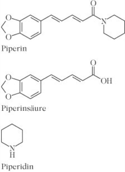 Piperin: Piperin, Piperinsäure und Piperidin. Piperin