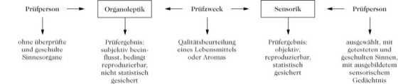 Sensorik: Unterschiede zwischen Sensorik und Organoleptik. Erläuterungen im Text. Sensorik