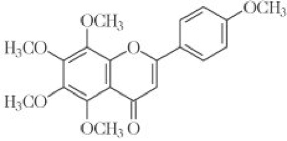 Tangeretin, 5, 6, 7, 8, 4‘-Pentamethoxyflavon, Etangeretin, ein sekundärer Pflanzenstoff aus der Gruppe der Flavonoide (Abb.). T. ist, wie Nobiletin und Sinesetin, ein methyliertes Flavonoid, das hauptsächlich in Citrusfrüchten vorkommt. T. wirkt antimikrobiell und führt in vitro zum Zelltod bei bestimmten Krebszellen.
