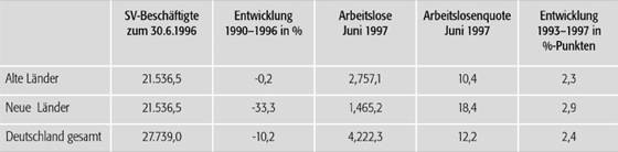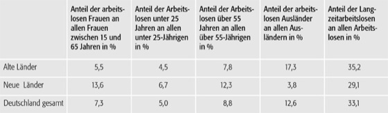 Arbeitslosigkeit 2: Arbeitslosigkeit 2: Arbeitslose nach demographischen Gruppen in den neuen und alten Bundesländern (1997).