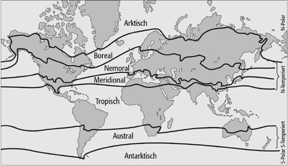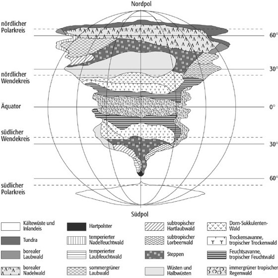 asymmetrischer Vegetationsaufbau der Erde 1: asymmetrischer Vegetationsaufbau der Erde 1: Thermische Vegetationszonen.