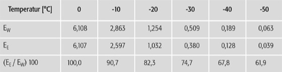 Bergeron-Findeisen-Prozess: Bergeron-Findeisen-Prozess: Sättigungsdampfdruck über Wasser (EW) und über Eis (EE)in hPa.