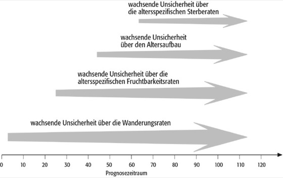 Bevölkerungsprognose 2: Bevölkerungsprognose 2: Zunehmende Unsicherheit über die Annahmen zur Entwicklung der Komponenten in Bevölkerungsprognosemodellen.