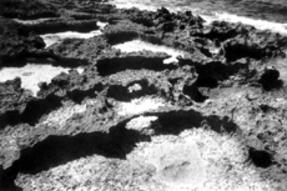 Felswannen, rock pools (engl.), fast immer bioerosive rundliche Felsaustiefungen von einigen Zentimetern bis Dezimetern Tiefe und einem Durchmesser bis zu einigen Metern im Supralitoral von Carbonatgesteinsküsten. Diese Felswannen ( Abb.) haben sehr rauhe Oberflächen und sind meist von einer schmalen Hohlkehle in Höhe der häufigen Wasserfüllung umgürtet. Sie unterscheiden sich deutlich in ihrer engen Vergesellschaftung von den vereinzelt auftretenden glatt ausgeschliffenen Felswannen des Supra- und Eulitorals, die durch die Brandung mithilfe von Lockermaterial ausgestrudelt werden zu Brandungskolken.